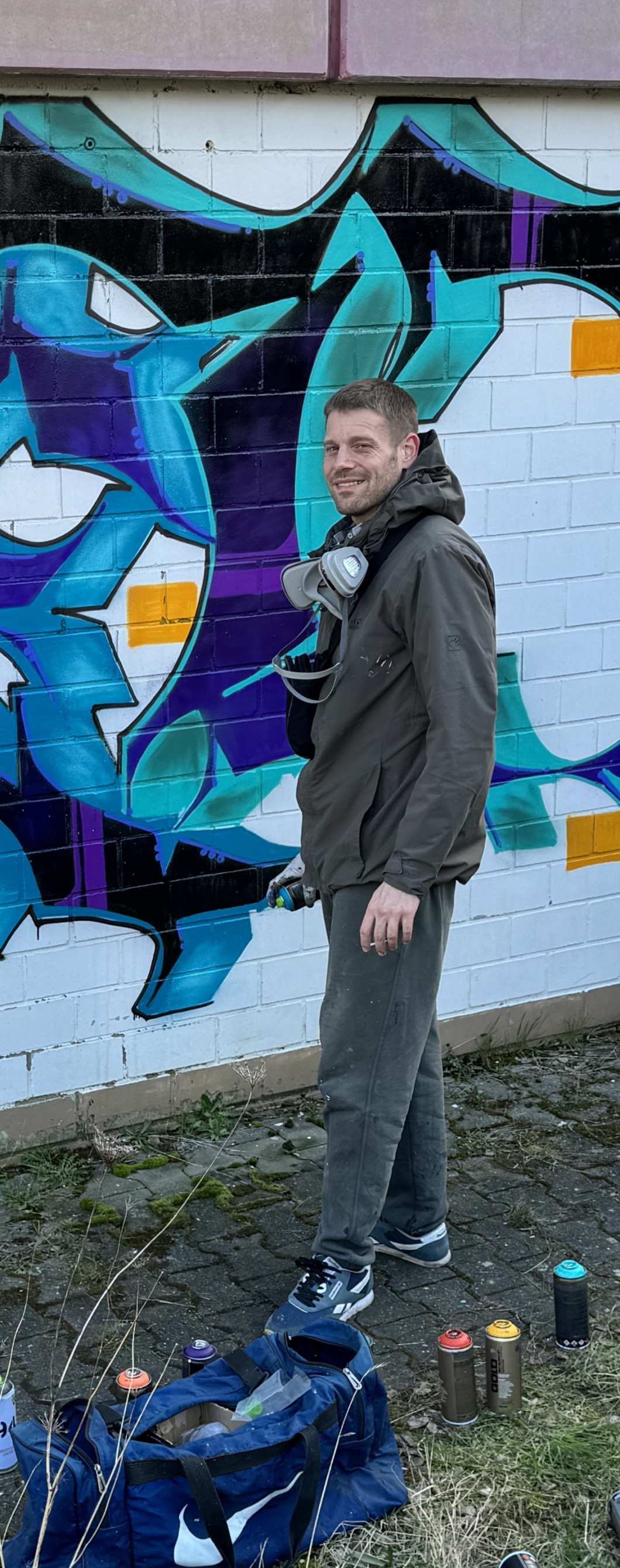 Geboren 1983 und aufgewachsen in Frankfurt am Main Nord. Graffiti male ich seit 1997 mit Pausen an der Wand, weil entsprechende Flächen nicht immer verfügbar waren. Auf dem Papier bin ich jedoch unter anderem kontinuierlich kreativ. An öffentlichen, legalen Wänden sind Bilder leider sehr vergänglich und man malt nur für ein Foto, was mich dazu bewegt hat ab 2013 meine Jet-Styles auf Leinwänden festzuhalten. Durch das Interesse meines Freundeskreises an den psychedelischen Hintergründen und Grundierungen meiner Leinwände mit Buchstaben sah ich mich motiviert und gefördert, diese in Form von Aufträgen 2015-2018 weiterzuentwickeln. Meine Techniken sind genebelte Farbübergänge, gerade Linien als Kontrast und 3D-Installationen aus Deckeln, Kabeln und Leichtteilen aus Plastik. Diese lackiere ich mit Acrylfarbe aus Sprühdosen und Acrylstiften. Inspirationsquelle ist es, meine eigene geistige Sphäre darzustellen und umfasst unter anderem Folgendes: